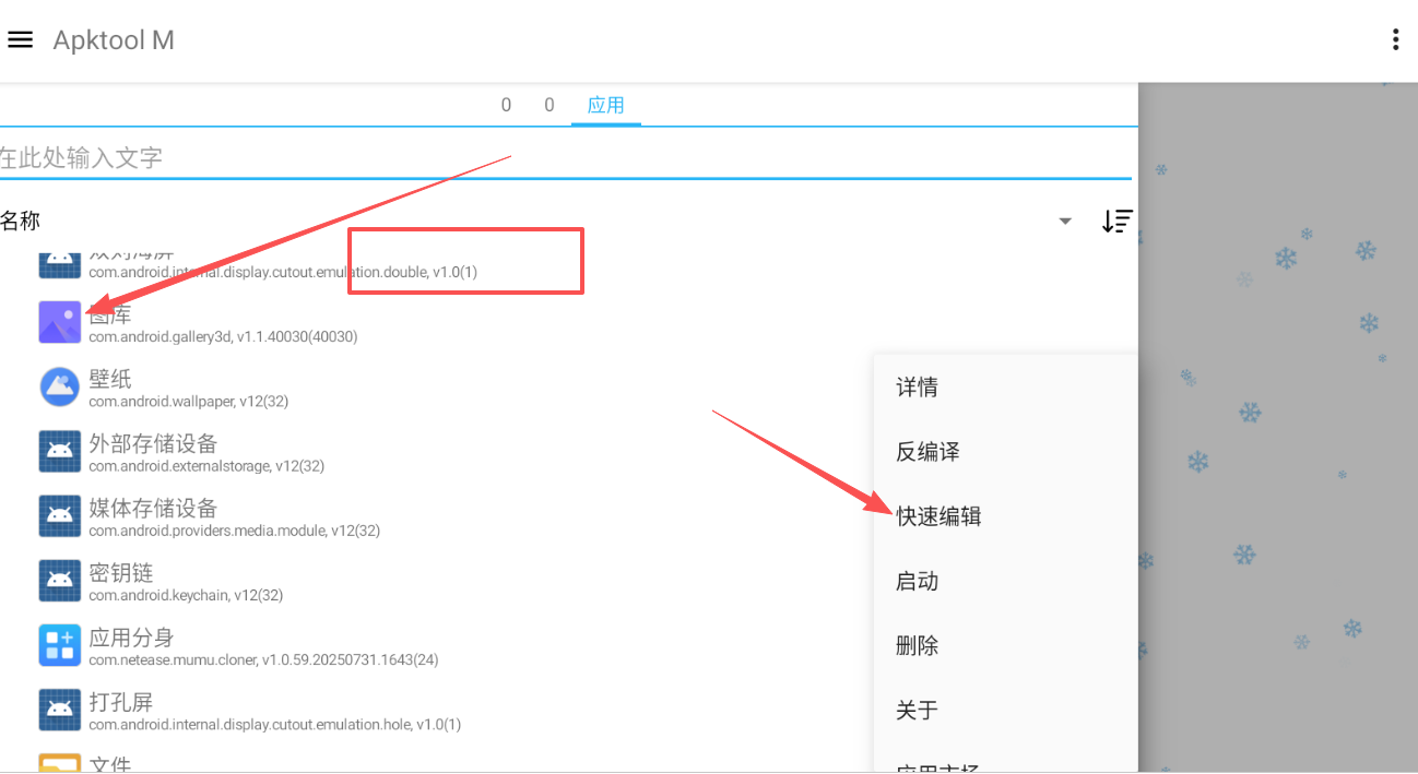 然后找到需要修改得软件:鼠标点击一下,然后快速编辑